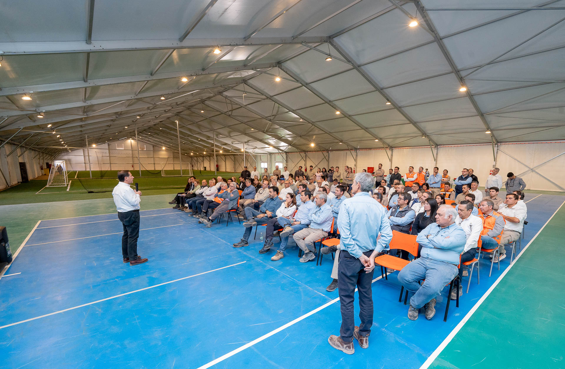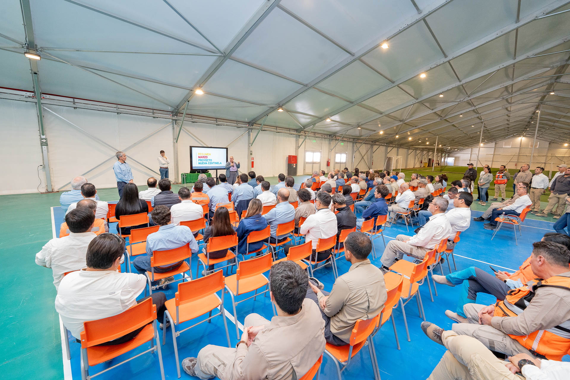 En el marco del Steering Committee liderado por el Presidente Ejecutivo de Antofagasta Minerals, Iván Arriagada, se desarrolló una actividad de camaradería en las canchas techadas del proyecto para conmemorar el primer año de construcción de Nueva Centinela. La instancia permitió compartir los avances alcanzados, visitar las áreas en construcción y proyectar los desafíos del nuevo periodo.