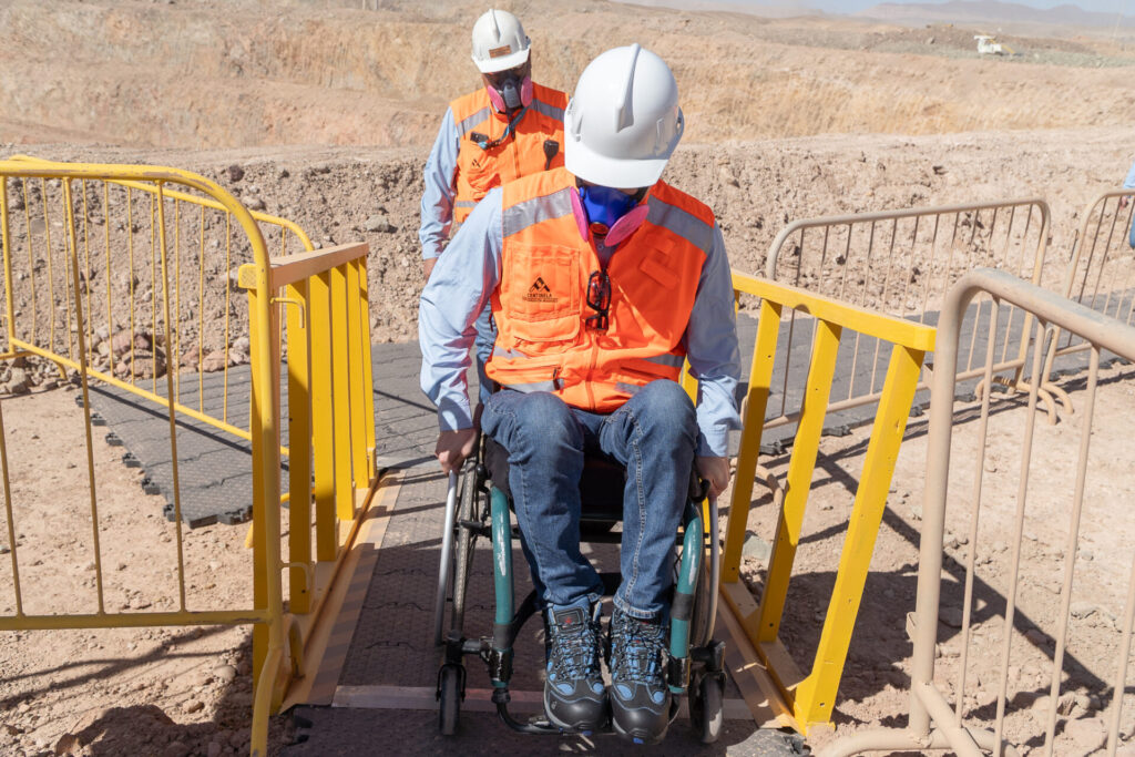 En el sector industrial, los accesos al edificio del Centro de Operaciones Integradas (COI) fueron adecuados con rampas, rodapiés y puertas más amplias. También, construyeron caminos reciclables aptos para el tránsito de silla de ruedas en los miradores de Esperanza Sur y de la nueva concentradora.
